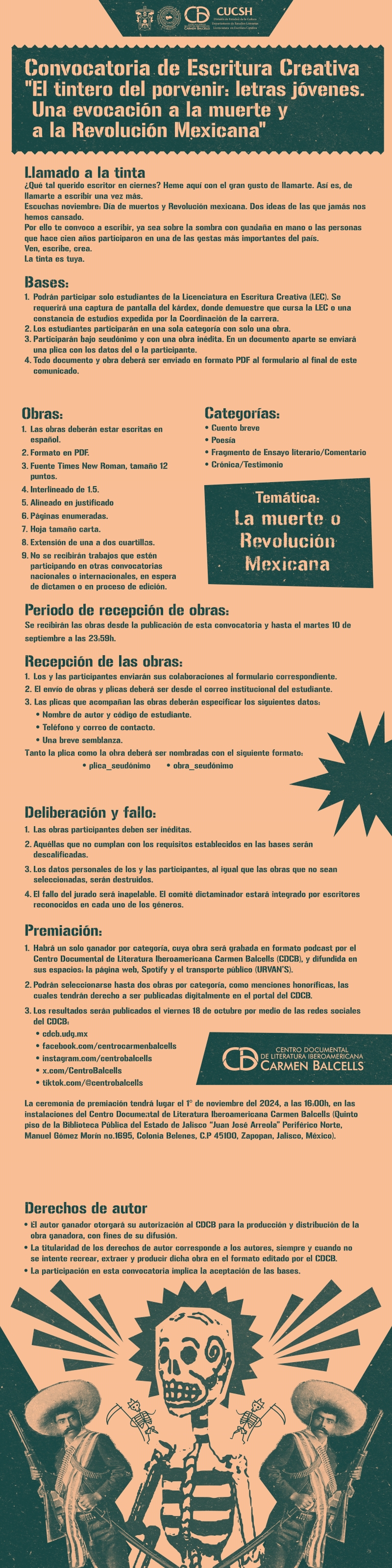 Convocatoria de Escritura Creativa "El tintero del porvenir: letras jóvenes. Una evocación a la muerte y a la Revolución Mexicana