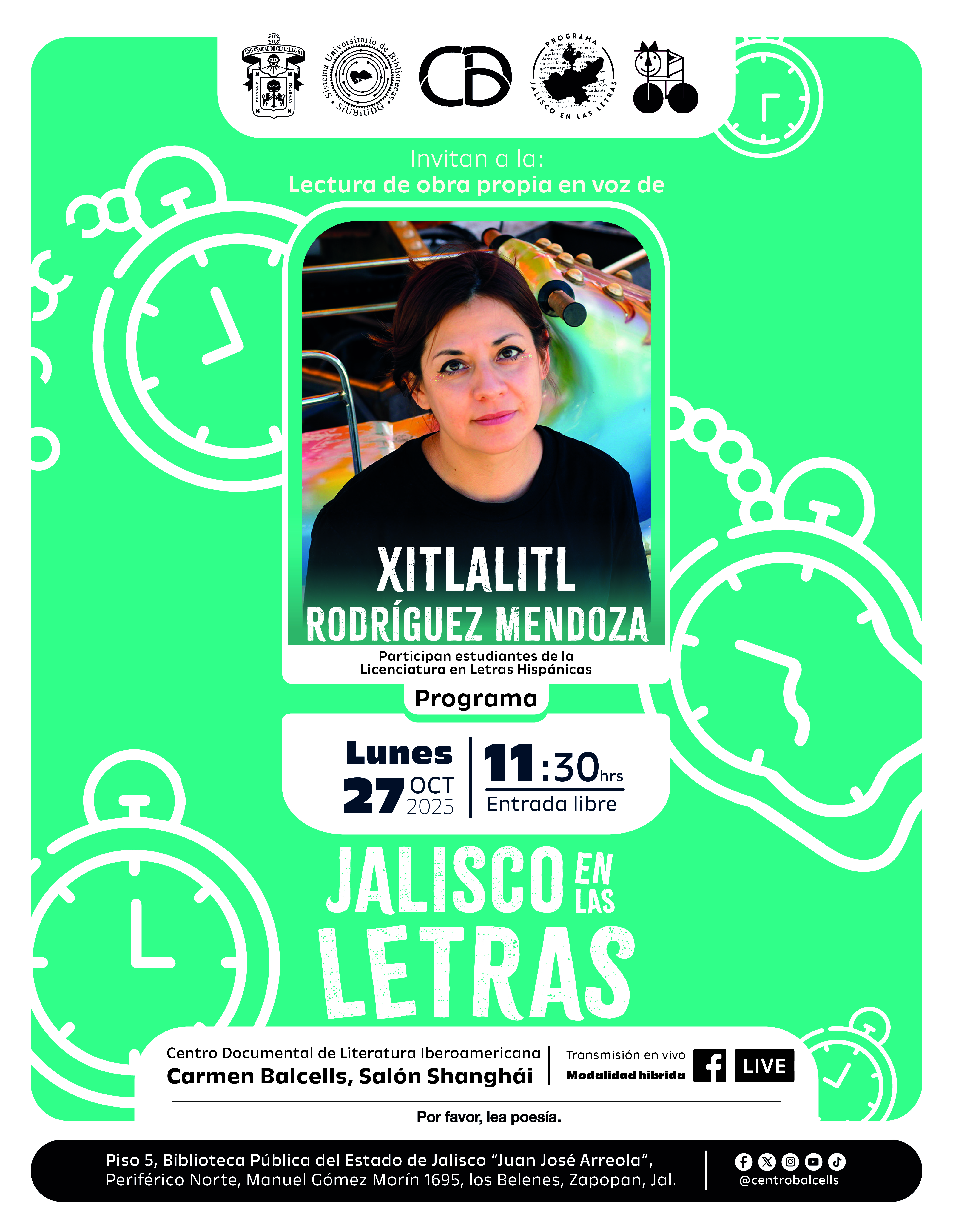 El lunes 27 de octubre a las 11:30 horas, la escritora Xitlalitl Rodríguez leerá su obra y conversará con el público, el evento forma parte de las actividades del Programa Jalisco en las letras 2025B.